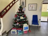 Los profesores/as han adornado las puertas con un lazo rojo y, cómo no, las mamás de la AMPA han decorado el hall del colegio con un árbol de Navidad y el Nacimiento. También, en los pasillos han colocado a los tres Reyes Magos de Oriente y un Belén muy bonito, adornos navideños con los que los niños/as disfrutan mucho viéndolos cada vez que transitan dichos espacios.