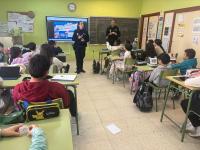 Dos policías de la Delegación de Participación Ciudadana de Guadalajara imparten en el centro dos charlas, una a cada grupo de 5º de Educación Primaria, con la temática: Acoso y Ciberacoso Escolar en las redes sociales.